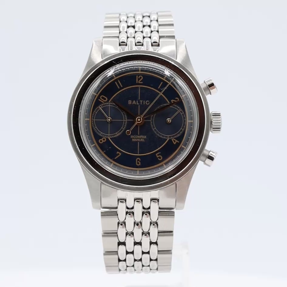 Additional Information: Skeleton Case Back. The Baltic Bicompax is powered by the Seagull ST1901 manual-winding chronograph movement that operates at 21,600vph. Equipped with a reliable 42-hour power reserve this timepiece delivers consistent performance.