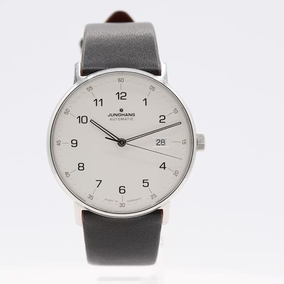 - Additional Information: The Junghans FORM A watch, known for its modern and minimalist design. It features an automatic movement and a clean, silver-plated dial with a black leather strap.