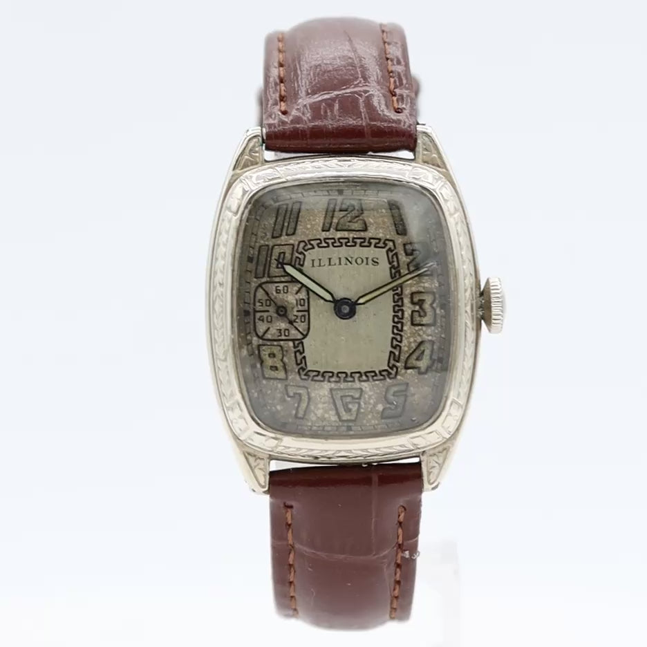 Antique 1929 Illinois Art Deco Men's Mechanical Wristwatch 905 USA 14k GF W/Box