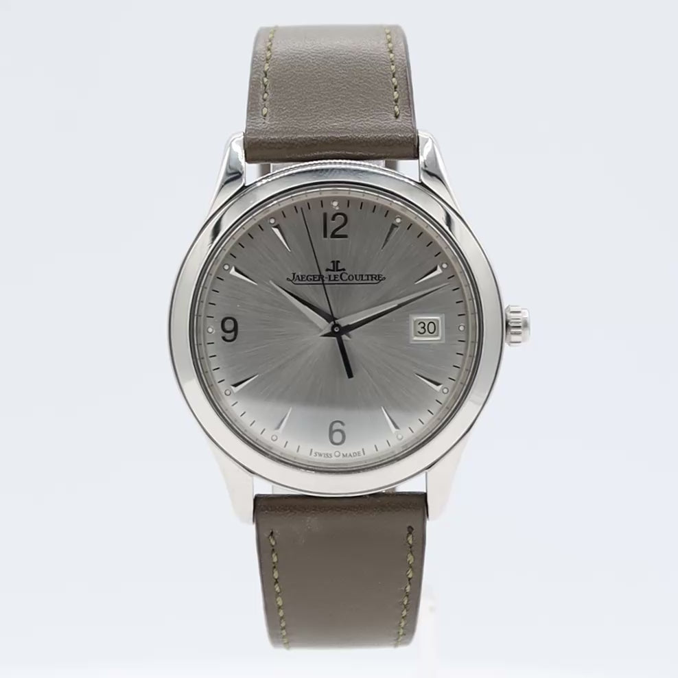 Additional Information: The Jaeger-LeCoultre Master Control Date is a men's luxury wristwatch from the Master Control collection. Its classic, elegant design includes a stainless steel case and a date function at 3 o'clock. This model features a silver sunburst dial and is in excellent pr-owned condition.