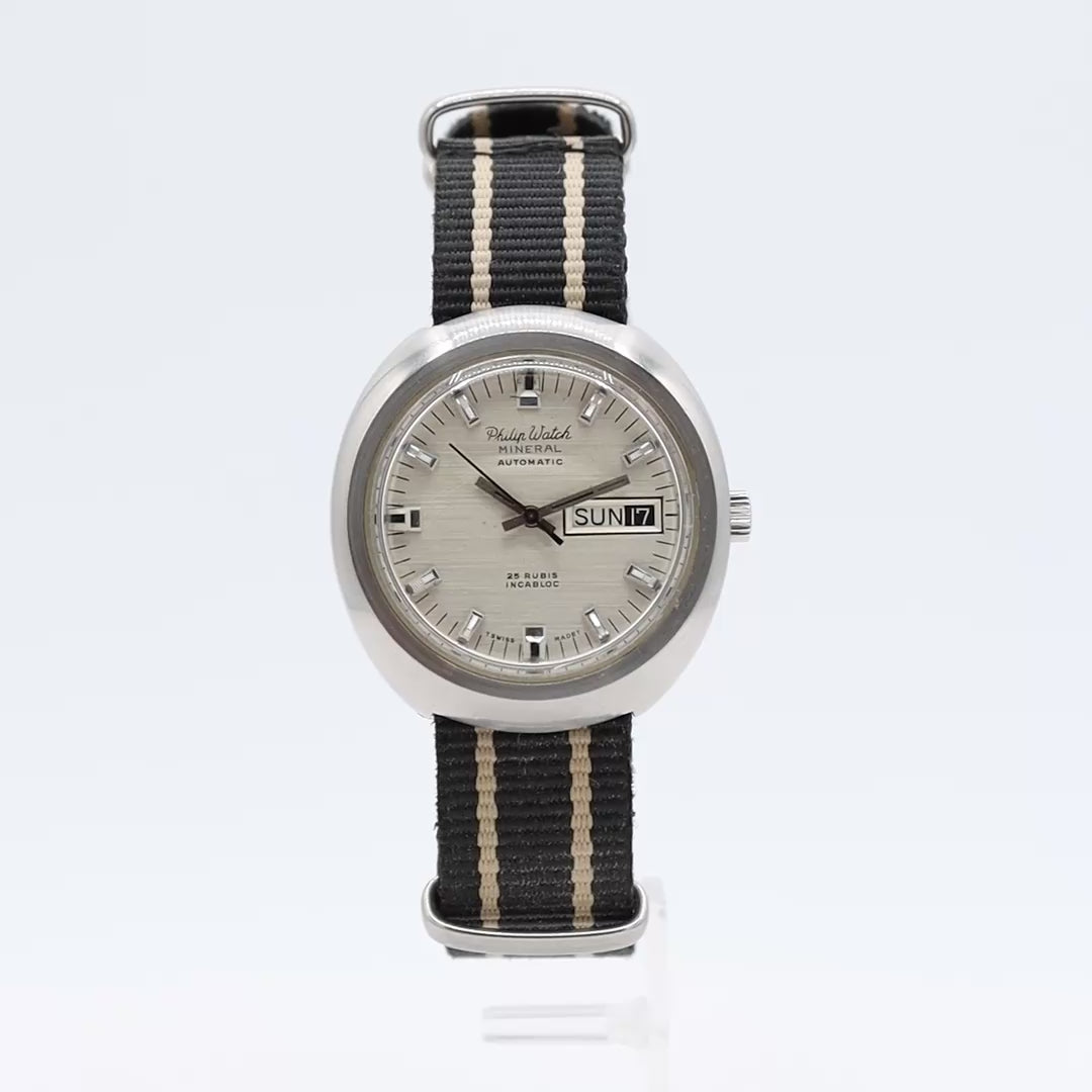 Philip Watch Mineral Day Date Men's Automatic Wristwatch ETA 2789-1 Swiss Steel