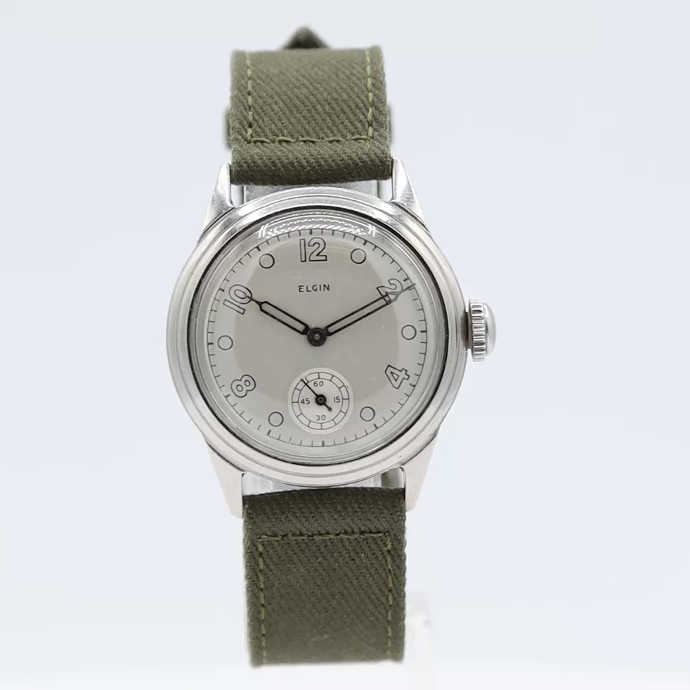About the brand: First founded in 1864 as the National Watch Company, Elgin watches were produced out of Elgin, Illinois at the world's largest dedicated watch production facility of the time. By 1910 - Elgin had built an observatory to help with the accuracy of their timepieces. Like most watch manufacturers, Elgin moved to defense production during the second World War and produced military issue watches such as the well known Elgin A-11. After the war, production of Elgin watches slowed and they transferred production to South Carolina. As the influx of Swiss watches came into the market, the Elgin brand sold its entities in 1968, and the name rights of the company were subsequently re-sold in the following years. Although the Elgin National Watch Company no longer exists, their impact on American watch making is seen through their large catalog of excellent vintage watches.