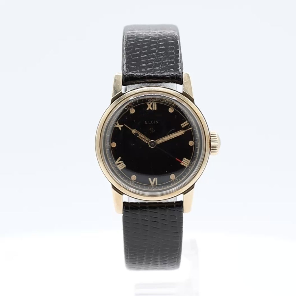 About the brand: First founded in 1864 as the National Watch Company, Elgin watches were produced out of Elgin, Illinois at the world's largest dedicated watch production facility of the time. By 1910 - Elgin had built an observatory to help with the accuracy of their timepieces. Like most watch manufacturers, Elgin moved to defense production during the second World War and produced military issue watches such as the well known Elgin A-11. After the war, production of Elgin watches slowed and they transferred production to South Carolina. As the influx of Swiss watches came into the market, the Elgin brand sold its entities in 1968, and the name rights of the company were subsequently re-sold in the following years. Although the Elgin National Watch Company no longer exists, their impact on American watch making is seen through their large catalog of excellent vintage watches.