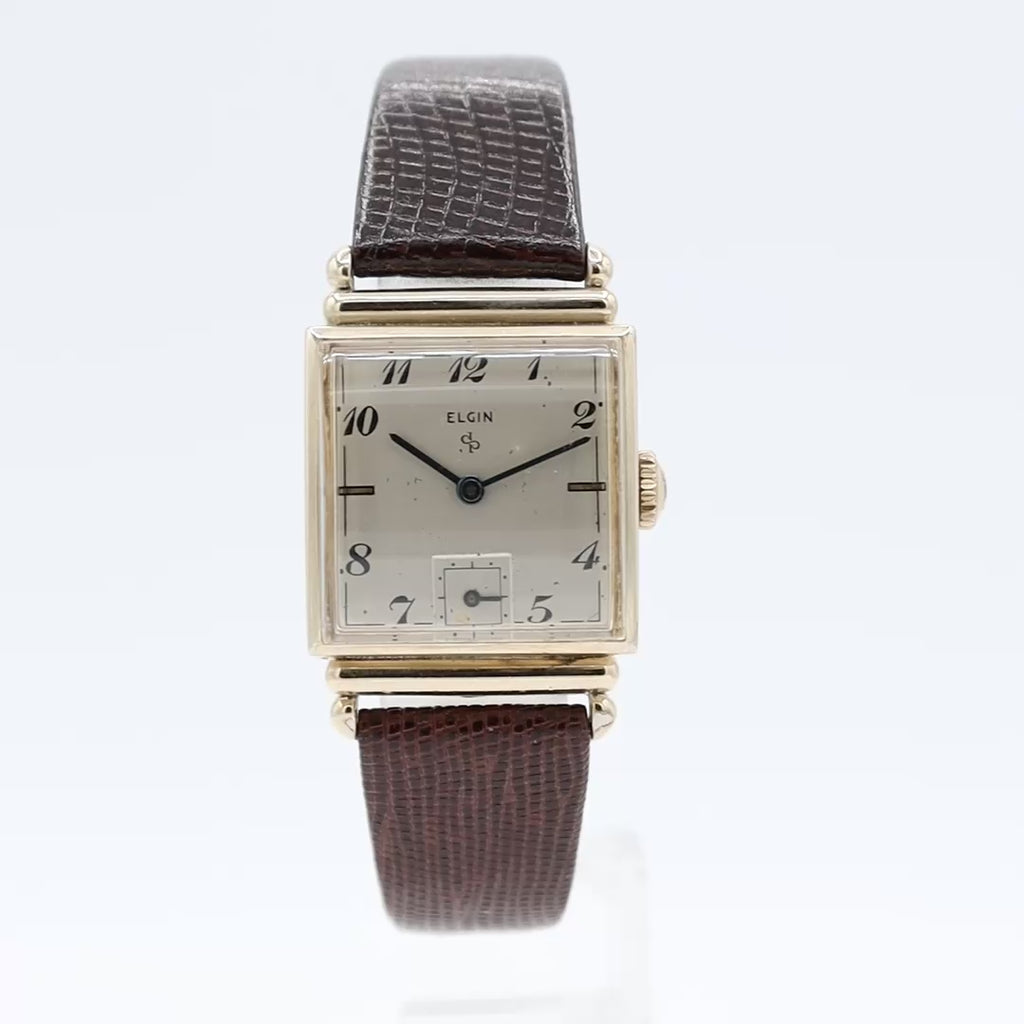 Vintage 1948 Elgin Rectangle Dress Men's Mechanical Wristwatch 623 USA 10k GF