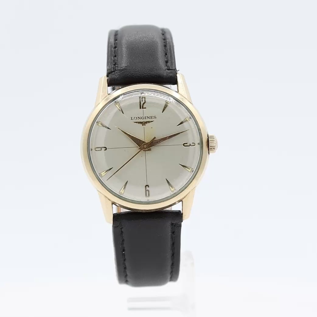 Vintage 1958 Longines Crosshair Dial Men's Mechanical Wristwatch Swiss 10k GF
