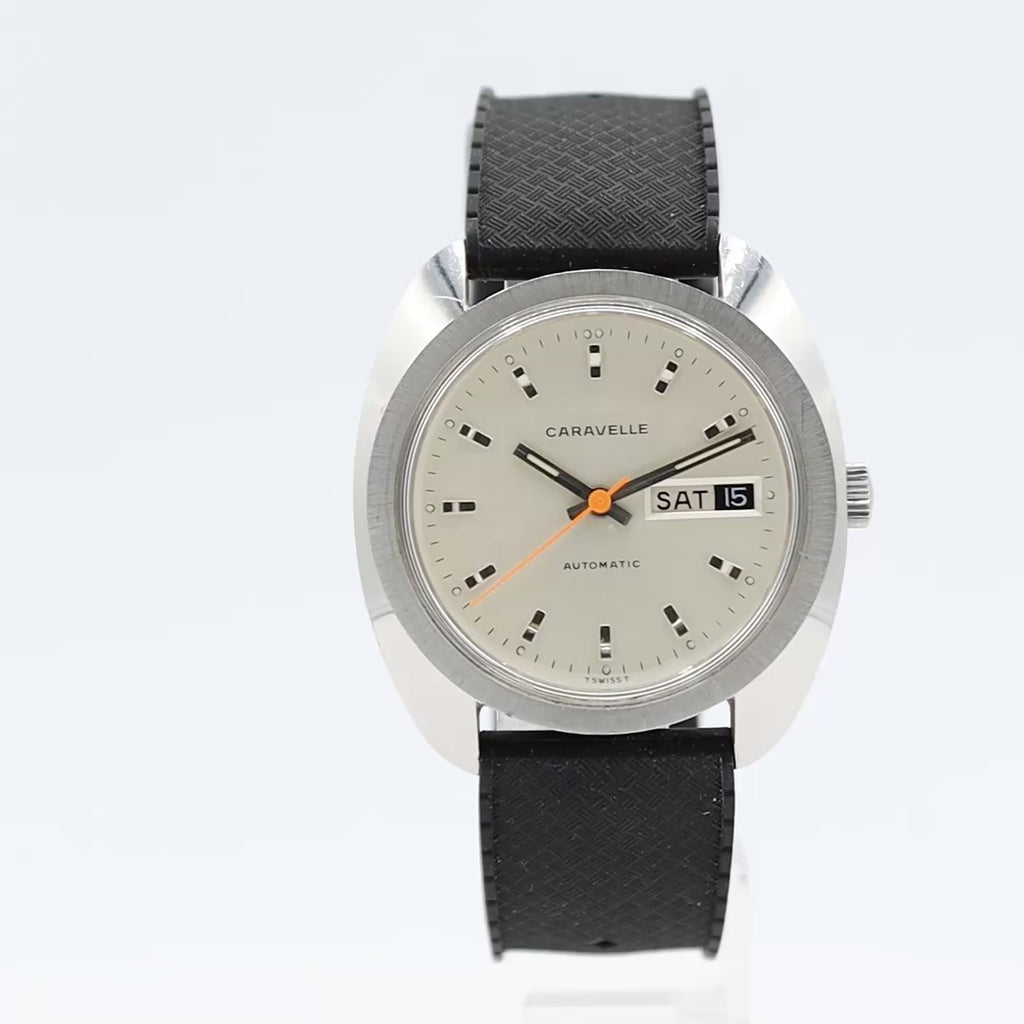 Vintage 1970 Caravelle Cream Dial Men's Automatic Wristwatch Steel Day Date