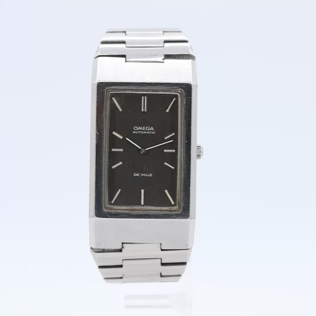 • Additional Information: The Omega De Ville reference 155.007 is a vintage men's wristwatch from the 1970s, known for its distinctive "Tank" or rectangular case design. It was part of the Omega De Ville collection, which was launched as an independent line of dress watches in 1967. The 155.007 model is highly regarded by collectors for its originality and unique retro style.