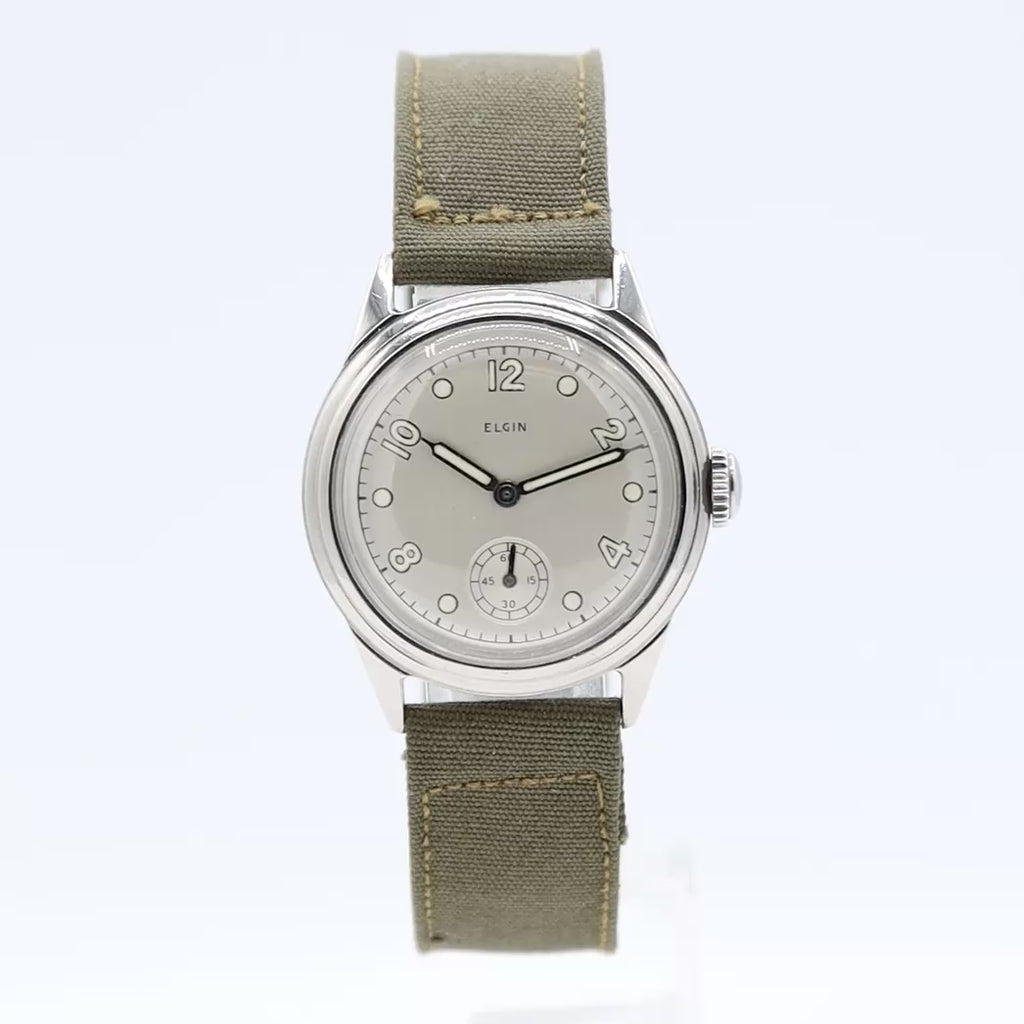 About the brand: First founded in 1864 as the National Watch Company, Elgin watches were produced out of Elgin, Illinois at the world's largest dedicated watch production facility of the time. By 1910 - Elgin had built an observatory to help with the accuracy of their timepieces. Like most watch manufacturers, Elgin moved to defense production during the second World War and produced military issue watches such as the well known Elgin A-11. After the war, production of Elgin watches slowed and they transferred production to South Carolina. As the influx of Swiss watches came into the market, the Elgin brand sold its entities in 1968, and the name rights of the company were subsequently re-sold in the following years. Although the Elgin National Watch Company no longer exists, their impact on American watch making is seen through their large catalog of excellent vintage watches.