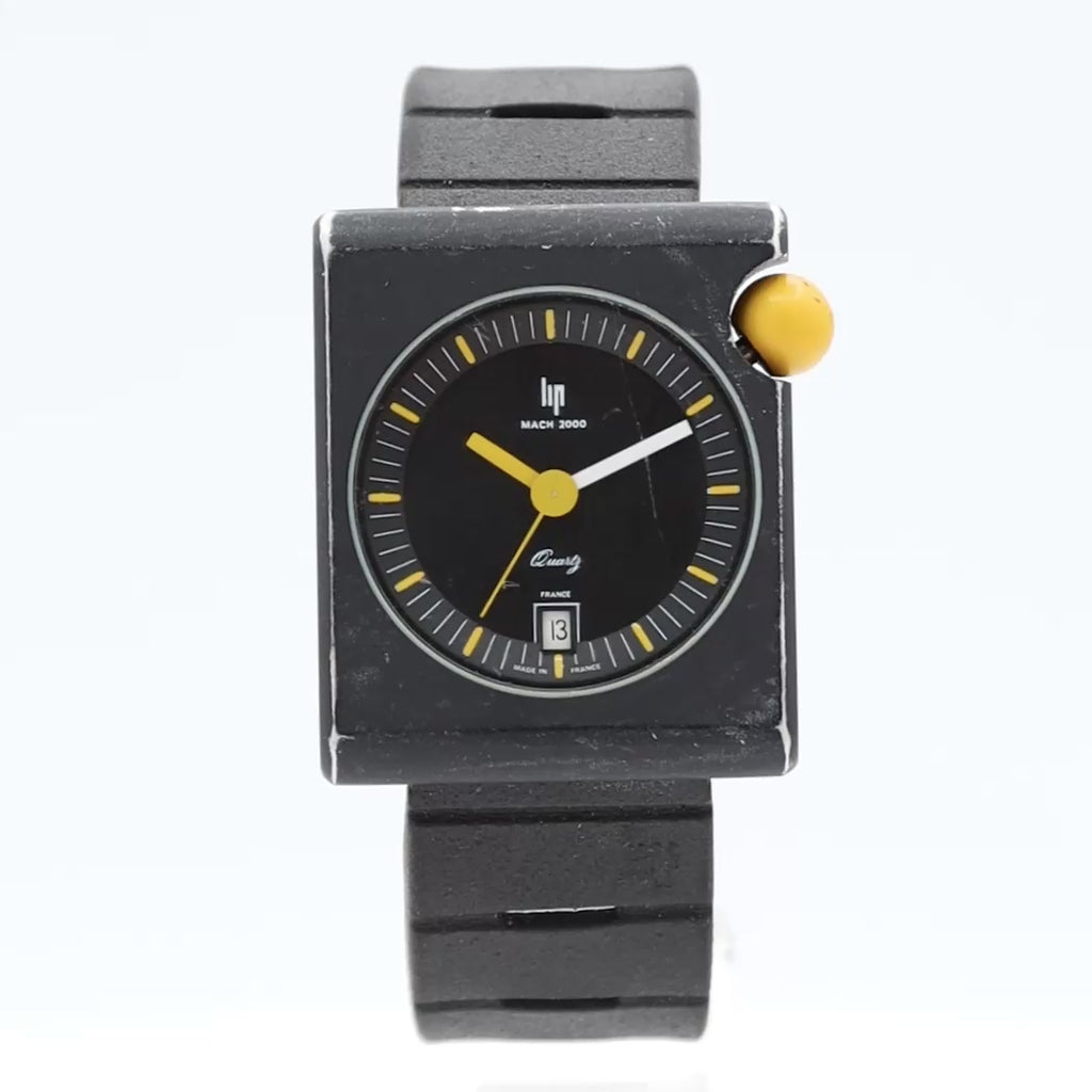 Additional Information: The Lip Mach 2000 is an iconic watch collection designed in the 1970s by French industrial designer Roger Tallon. The line is known for its asymmetrical, ergonomic design and colorful spherical pushers.