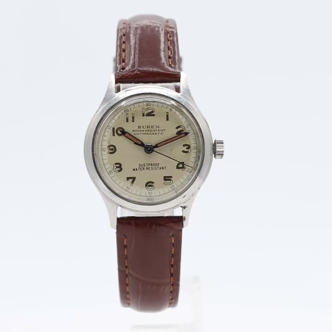 Vintage 31mm Buren Grand Prix 17 Jewel Men's Mechanical Wristwatch Swiss Steel