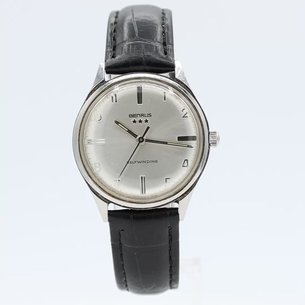 Vintage 32mm Benrus 7001 Sunburst Men's Automatic Wristwatch Swiss Steel 3 Star