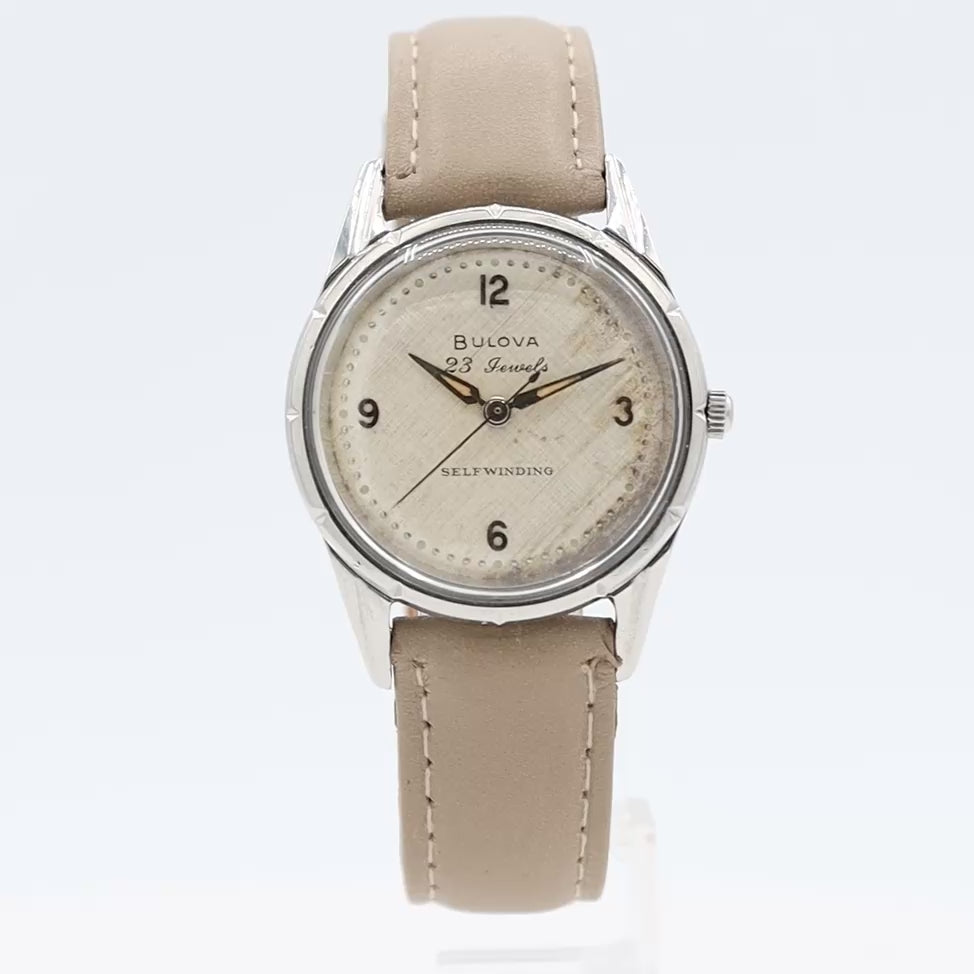Vintage 33.5mm 1960 Bulova Linen Dial 23 Jewel Men's Automatic Wristwatch Steel