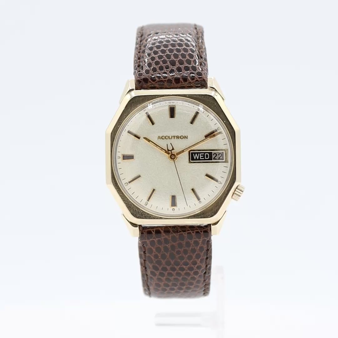 Vintage 33.5mm 1970 Accutron Octagon Men's Tuning Fork Wristwatch USA 14k GF