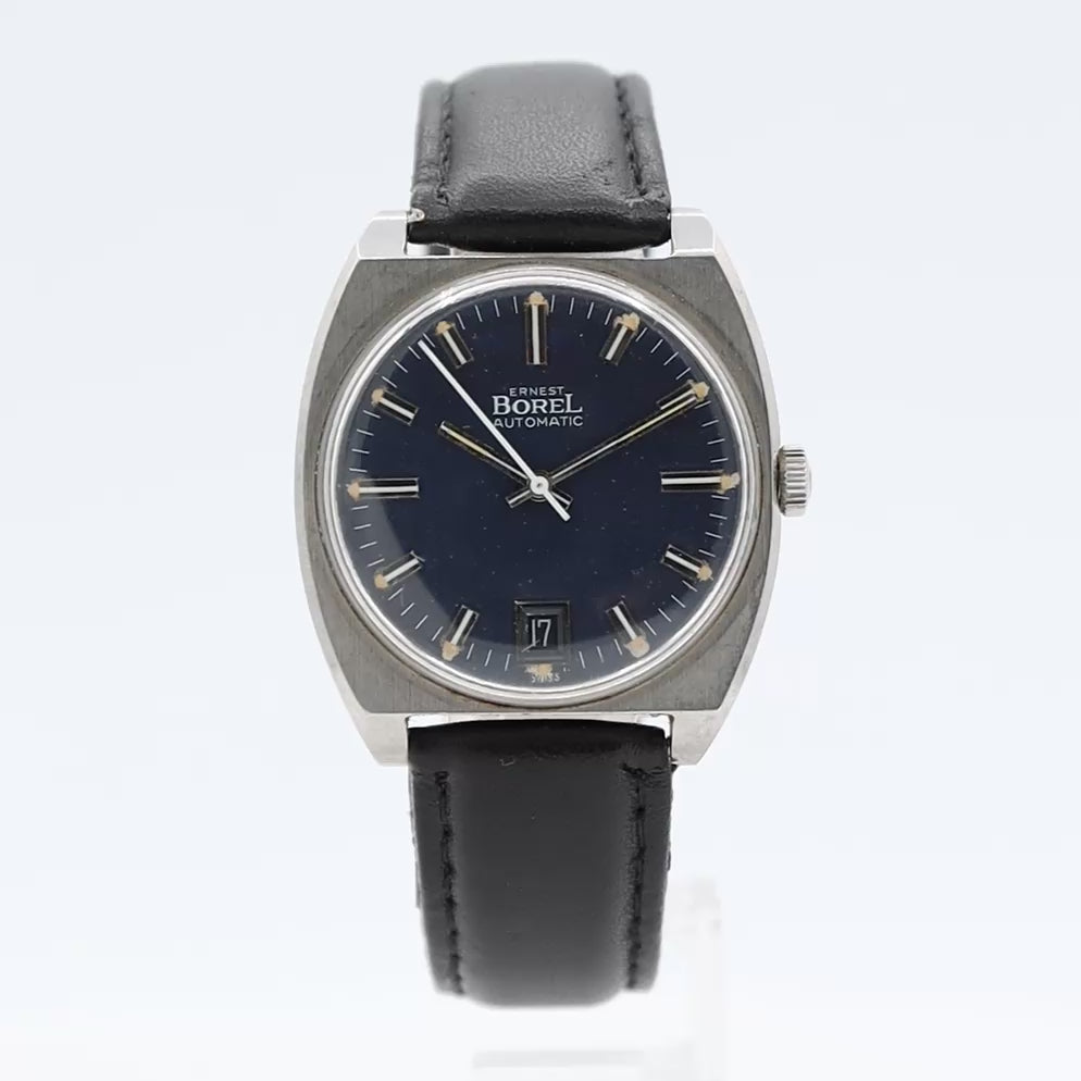Vintage 34mm Ernest Borel Blue Date Men's Automatic Wristwatch Swiss Steel