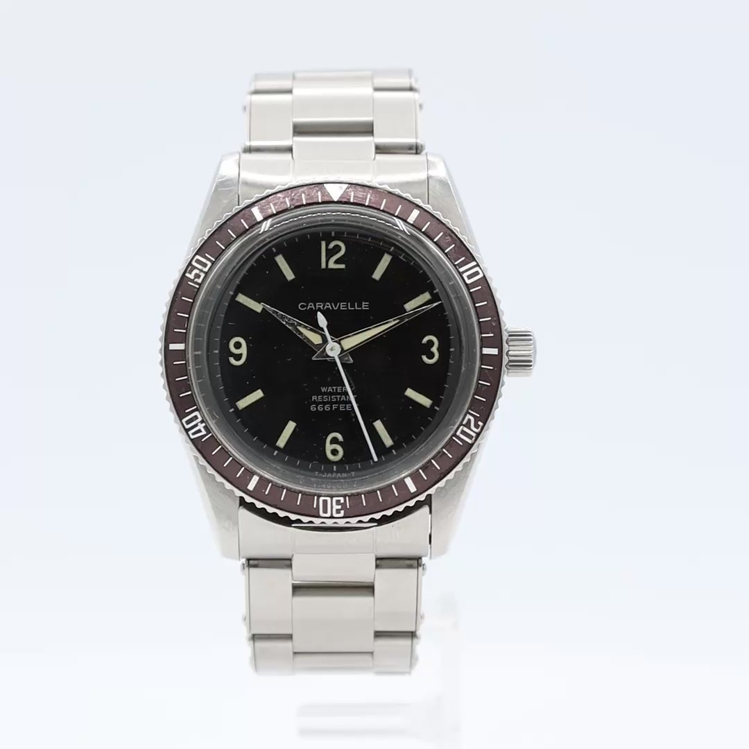 Additional Information: This is a vintage Caravelle from the early 1970s, made by Bulova as a reliable, everyday mechanical watch. It’s simple, well-built, and representative of mid-century American watch design. Commonly known as the Sea Hunter or "Devil Diver," is a vintage dive watch from Bulova's Caravelle division produced circa 1970. It is highly regarded as an entry-level vintage diver due to its classic aesthetics and robust build.