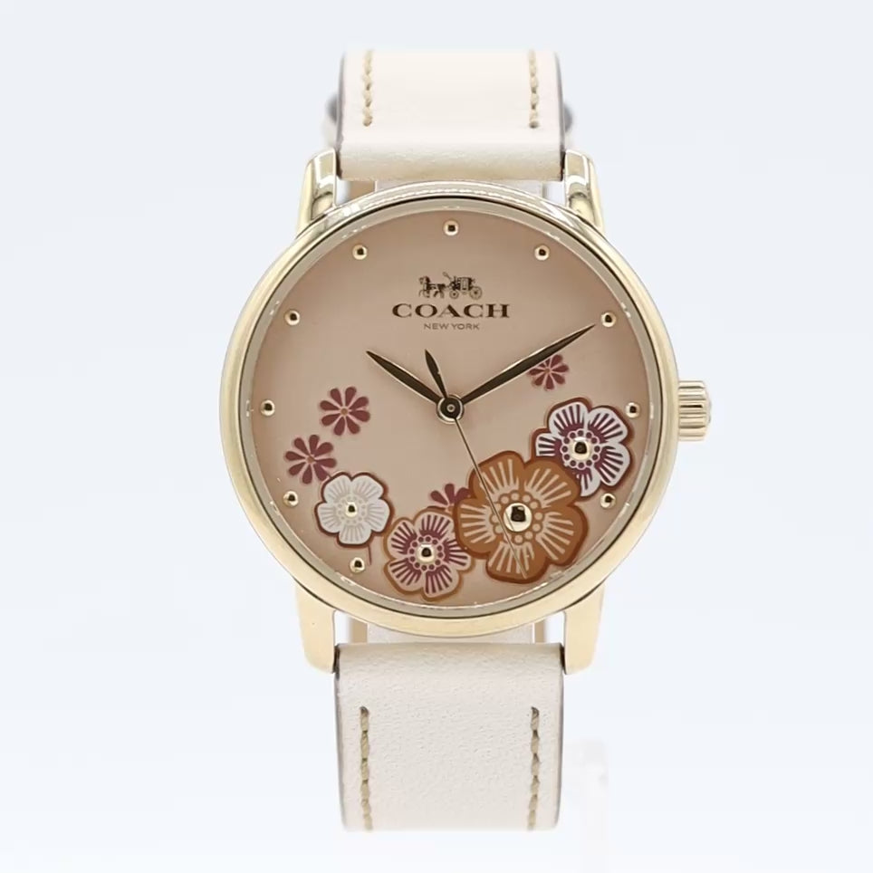 • Additional Information: This trendy and fashionable Coach watch features a dusty pink, ivory and gold colored flower design on the dial. The soft pink hues offer a lovely and feminine look.