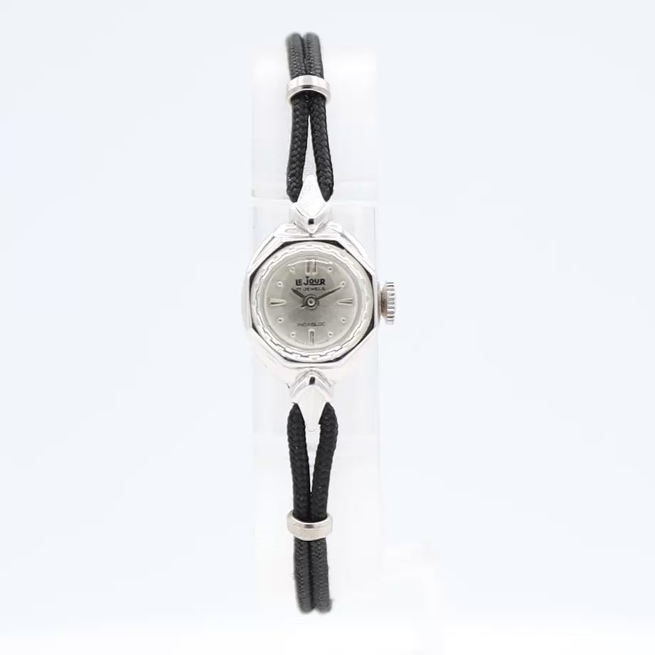 Additional Information: Vintage Le Jour cocktail watches featuring the A. Schild 1677 movement are small, manually wound watches made in Switzerland between 1960 and 1965. A. Schild was a prominent Swiss movement manufacturer before merging with ETA in the late 1970s. A Le Jour ladies' watch with this movement is an uncommon find and is considered a vintage collector's item.