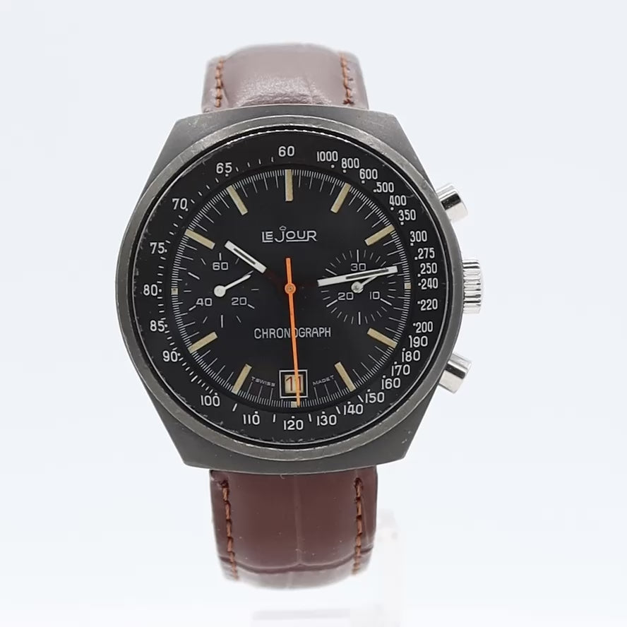 Vintage Le Jour Men's Chronograph Wristwatch Valjoux 7734 Black PVD Serviced