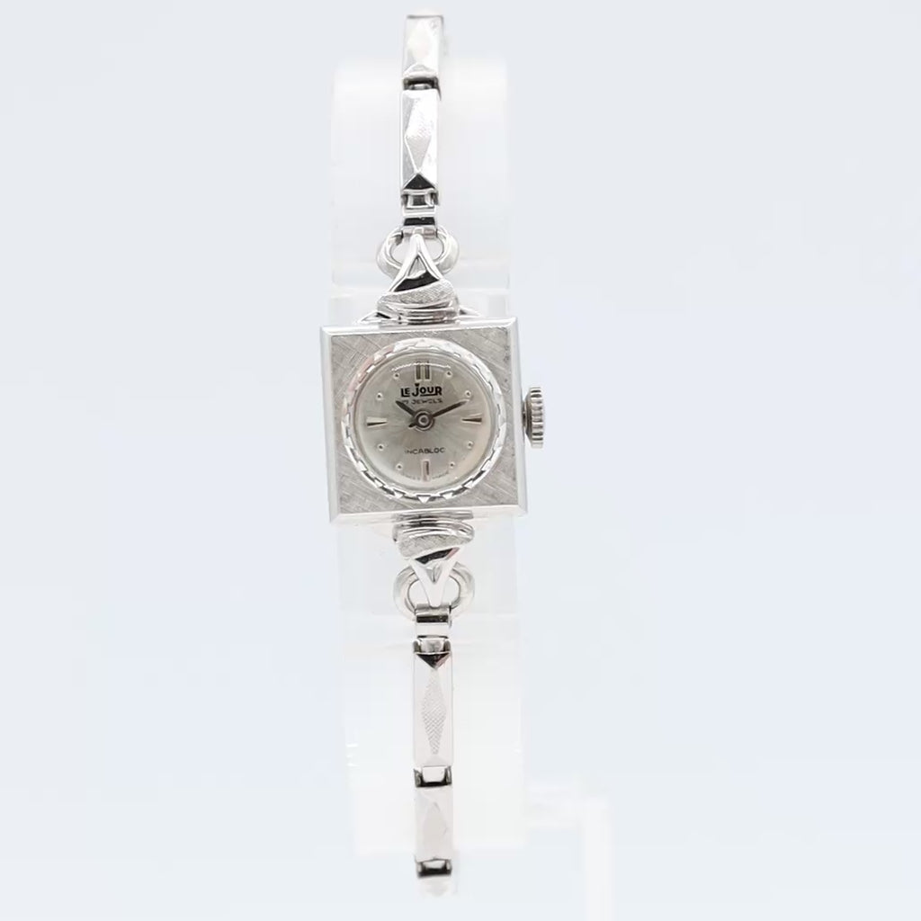 Additional Information: Vintage Le Jour cocktail watches featuring the A. Schild 1677 movement are small, manually wound watches made in Switzerland between 1960 and 1965. A. Schild was a prominent Swiss movement manufacturer before merging with ETA in the late 1970s. A Le Jour ladies' watch with this movement is an uncommon find and is considered a vintage collector's item. This particular model has a Linen Case.