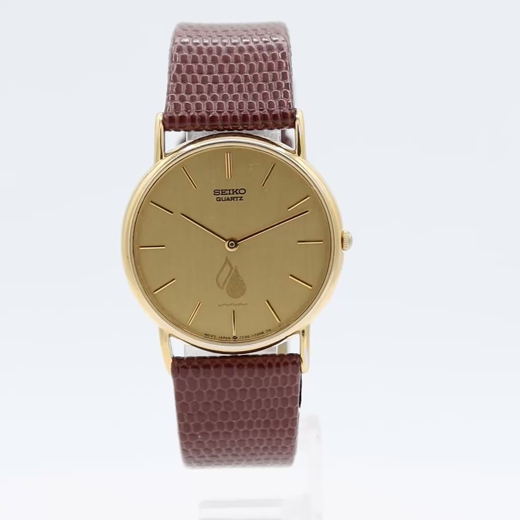 • Additional Information: The Seiko 5Y30-7009 is a vintage quartz wristwatch, featuring a gold-tone case and gold dial with stick markers. It is a simple, classic analog watch powered by the 5Y30 quartz movement, known for accurate timekeeping. This model is often described as a dress or casual watch due to its versatile and sophisticated appearance.