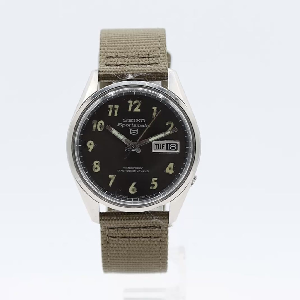 Additional Information: The Seiko Sportsmatic 6619-8060 is a vintage 1960s automatic wristwatch known for its "sterile" or non-branded design, which was famously used by covert operations teams like MACV-SOG during the Vietnam War. Key features include an automatic 6619 caliber movement with 21 jewels, a stainless steel case (often 36-37mm), and a day-date display
