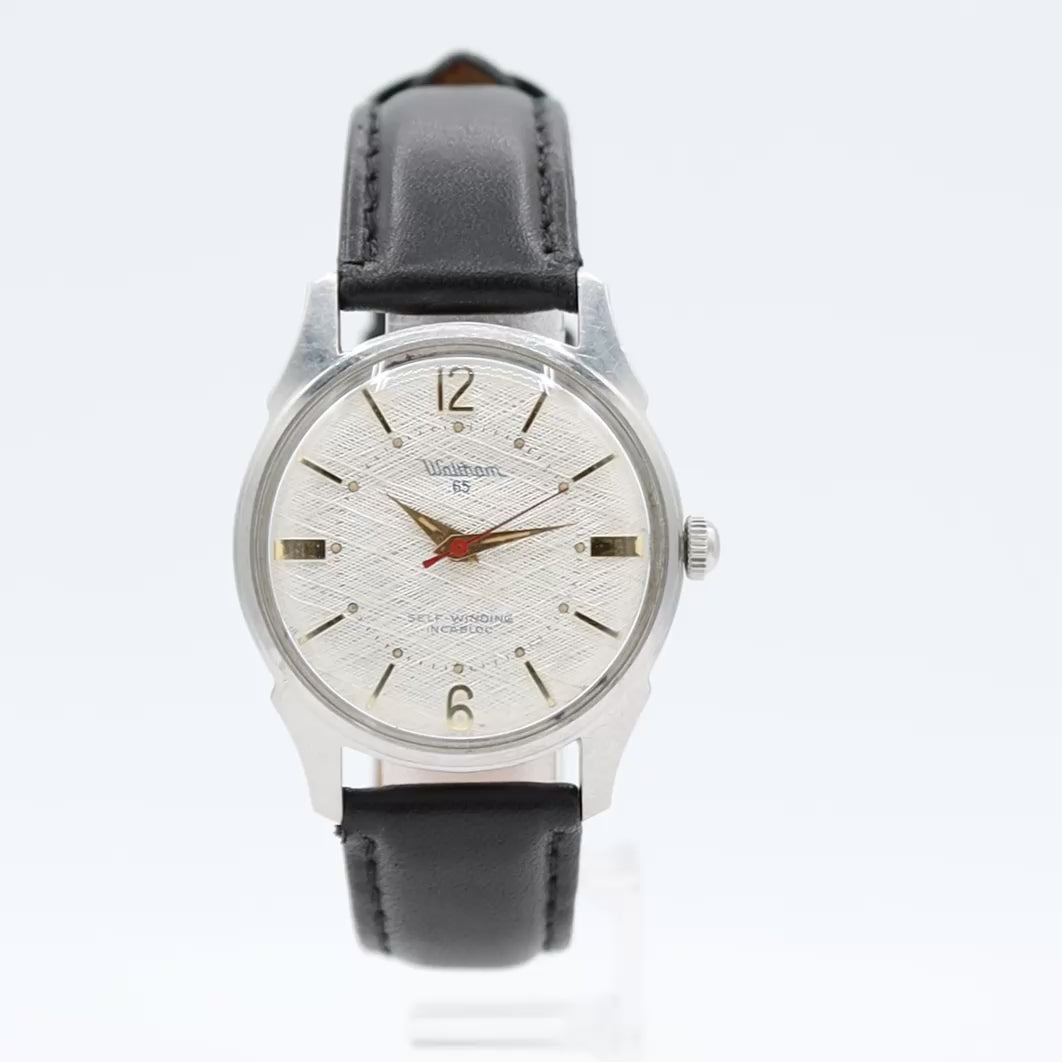 Additional Information: he Waltham 65 jewel watch is a vintage automatic wristwatch from the 1950s-1960s, a notable item from the "jewel war" era when high jewel counts were a prominent marketing feature.